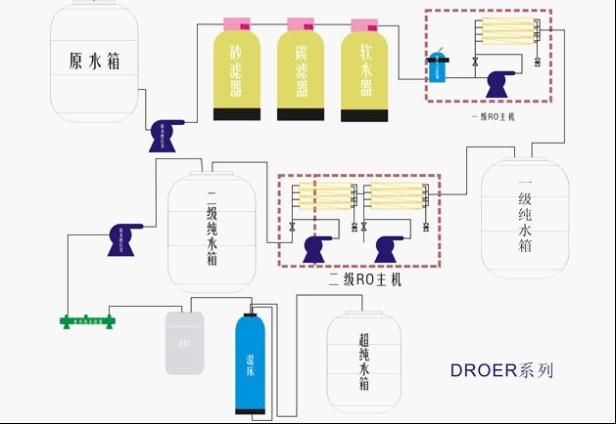 (4)反滲透主機(jī),功用:主要是通過反滲透過濾,達(dá)到生產(chǎn)純水之目的。